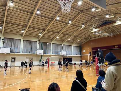 1セット目はセット終了間際、怒涛の攻撃で追付き、デュースまで持ち込みました。しかし善戦及ばす、セットを落としてしまいます。続く第2セットもリズムよく戦うも後半ミスが続き相手のリズムでゲームが進んでしまいました。セットカウント0−2での敗退でしたが、生徒たちは声を出し自分たちで鼓舞して頑張っていました。