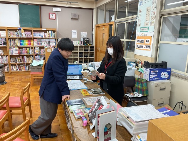 国語の授業では、朝読書の本を探しに学校図書館を利用しました。