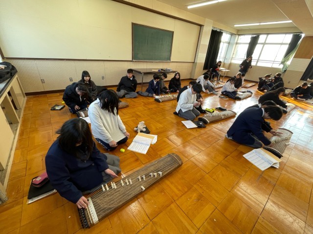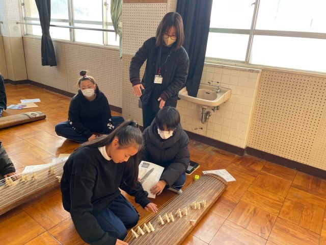 本日7限目の音楽の授業で、日本の伝統文化である「お箏」のテストを行いました。