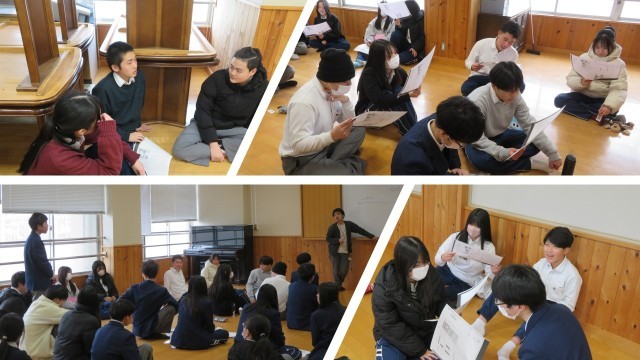 先生が出したテーマをもとに、ペアで考えて意見を発表していました。