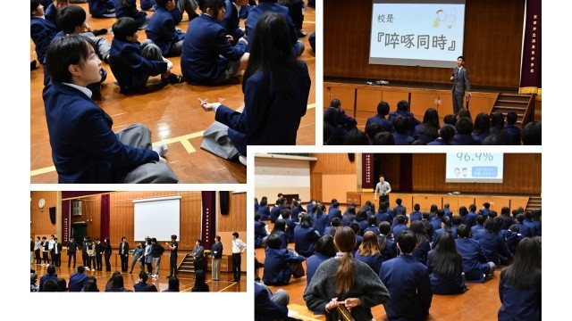 今年度の校是「啐啄同時」に始まり、時間割の変更や、本校の「つながり」について、各チーフの先生から生徒のみなさんに伝えました。