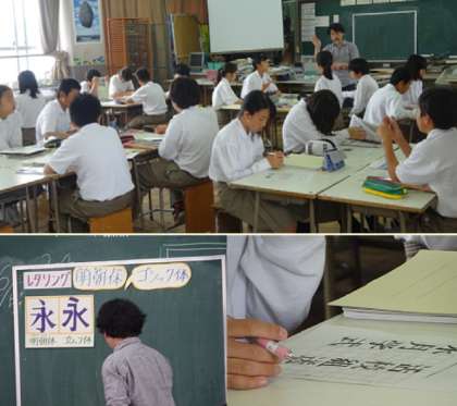 3限の授業の様子です。上から、2組 理科、3組 美術、4組 社会 です。