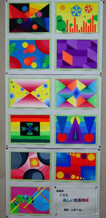 中:2年生の「美しい色面構成」