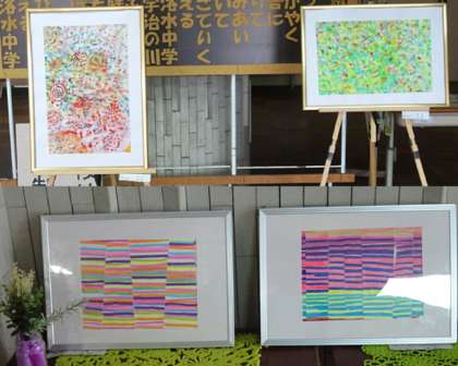 玄関に、美術の授業での作品が展示されました。