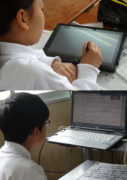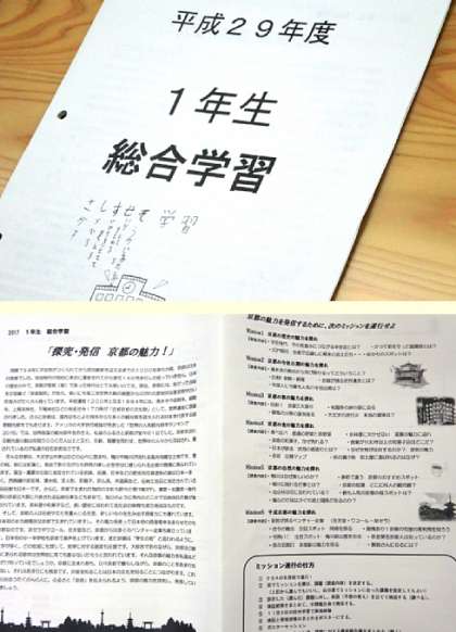 1年生は午後、「探究・発信 京都の魅力!」と題して、調べ学習が始まりました。京都の魅力を発信するために、6つのミッションを各クラス各班で選び、コンピュータ室や教室のパソコン、タブレット、図書室を使って、みんなミッションを遂行していました。