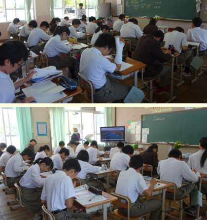 2限の授業の様子です。上から、2組 数学、3組 社会、4組 英語 です。