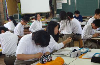 1限の授業の様子です。上から、2組 保健、3組 美術 です。