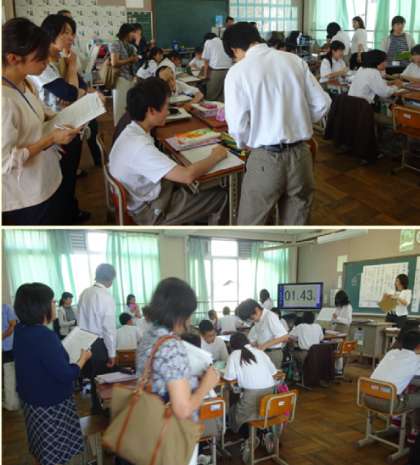 本日6限目、小学校の教職員の方々にも授業の参観(公開授業)をして頂き、小中合同の研修会を実施しました。研修会では、まず、全体会で「今年度の小中連携の取組について」の説明がありました。その後、グループに別れて研究協議(分散会)が行われました。
