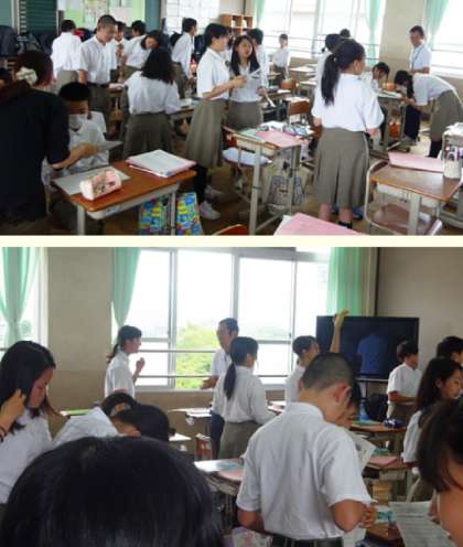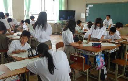 3限の授業の様子です。3組では研究授業が行われていました。上から、3組 国語、2組 英語、4組 数学 です。