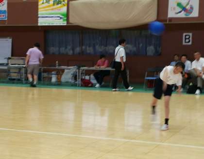 合同球技大会(ドッチボール)の様子です。ドッチボール3勝で優勝しました。