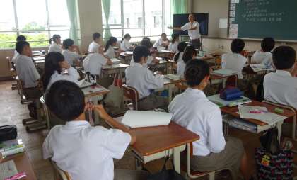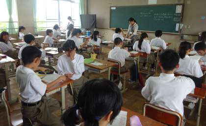 3限の授業の様子です。上から、2組 理科、3組 美術、4組 社会 です。
