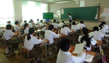 1限開始前後の授業の様子です。上から、2組 国語、3組 家庭、4組 英語 です。