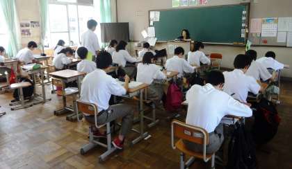 1限の授業の様子です。上から、2組 社会、3組 音楽、4組 理科 です。