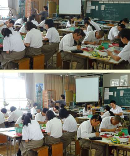 3限の授業の様子です。上から、2組 美術、3組 数学、4組 国語 です。