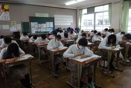 3限の2年の美術のテストの様子です。2組。