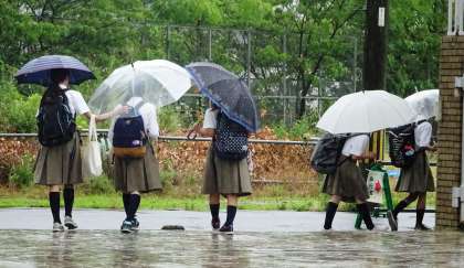 下校の様子です。寄り道をせず気をつけて下校して下さい。下校後は、台風接近のため外出はひかえて下さい。