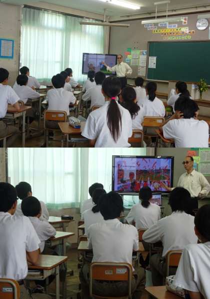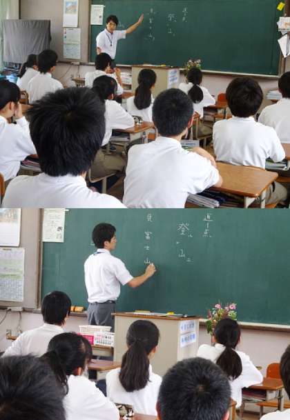 体験授業の様子です。上から、2組 古典、3組 世界史、4組 生物 です。