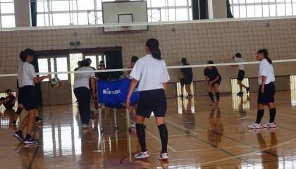 バレーボール部は、男女一緒に練習をしていました。夏季大会に向けて頑張って下さい。