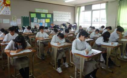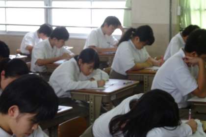 本日も午後から2年生は学習確認プログラムを実施しました。5限 理科、6限 英語 です。 5限の理科のテスト、2組の様子です。