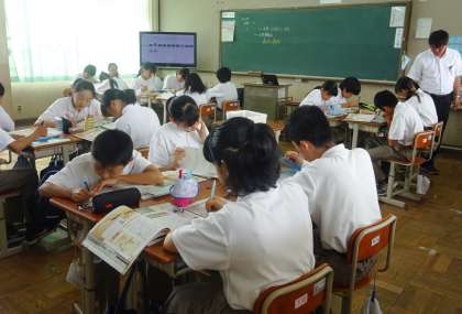 3限の授業の様子です。上から、2組 社会、3組 音楽、4組 国語 です。
