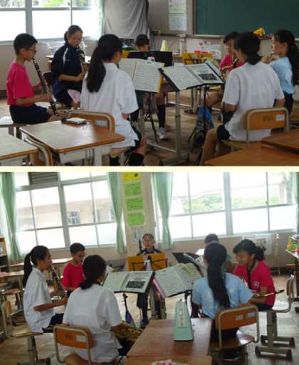 吹奏楽部は地域での演奏会や吹奏楽コンクールに向けて頑張っています。