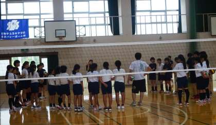 本日、バレーボール部は、14:00〜校区2小学校のバレーボール部の児童さんを迎え、練習していました。アップ、レシーブ練習、スパイク練習とやっていました。