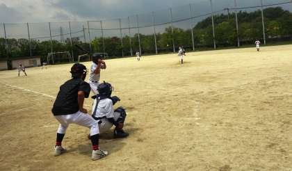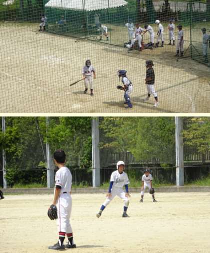 今日の野球部の様子です。合同チームで練習試合をしています。