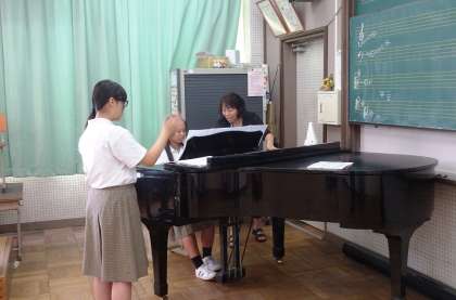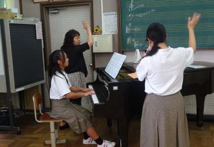 本日、夏休み2回目の合唱コンクールの指揮者と伴奏者の講習会が音楽室で行われていました。