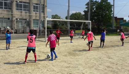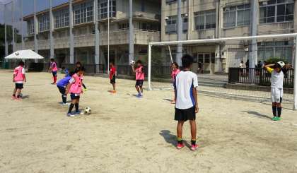 今日のサッカー部の様子です。スローインの練習をしていました。