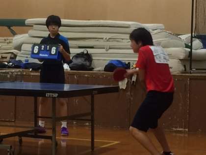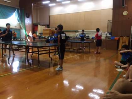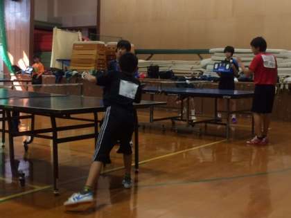 今日の卓球部は、洛北中学校で練習試合をしています。その様子です。