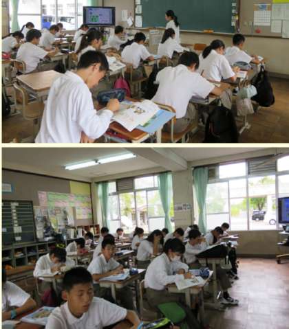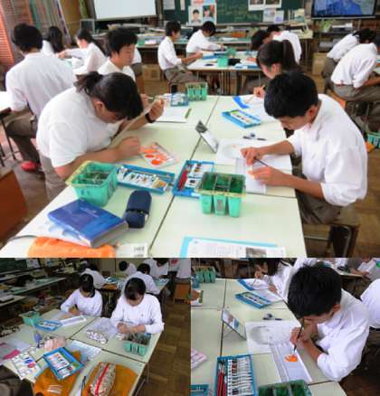 4限の授業の様子です。上から、2組 美術、3組 数学、4組 家庭 です。