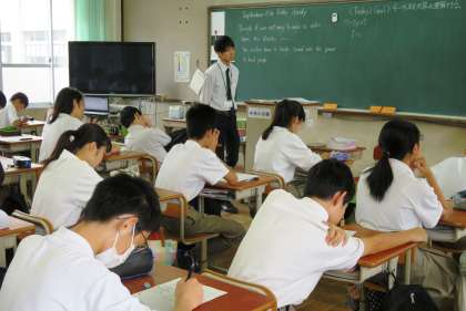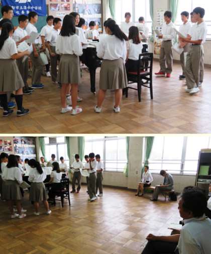 2限の授業の様子です。上から、2組 社会、3組 音楽、4組 英語 です。3組では教育実習生の研究授業が行われていました。また、4組でも実習生が授業をしていました。