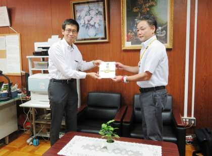 本日京都競馬場より、代表の方にお越しいただき、寄付いただきました「AEDトレーナーセット」の目録贈呈式を行いました。