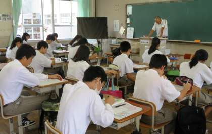 3限の授業の様子です。上から、2組 数学、3組 理科、4組 社会 です。