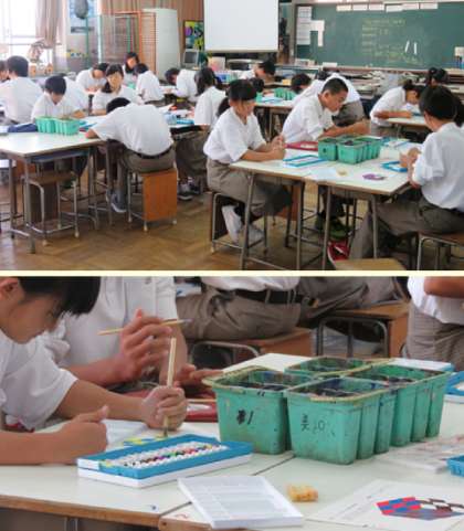 1限の授業の様子です。上から、2組 国語、3組 数学、4組 美術 です。