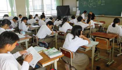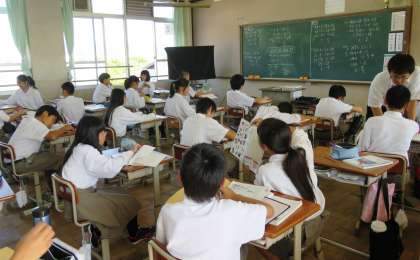 5限の授業の様子です。上から、2組 数学、3組 音楽、4組 社会 です。