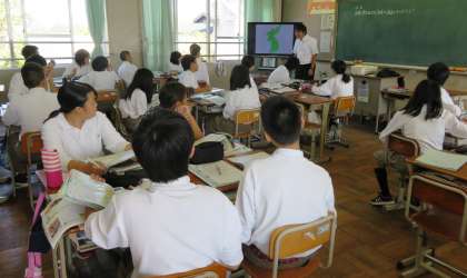 5限の授業の様子です。上から、2組 国語、3組 美術、4組 社会 です。