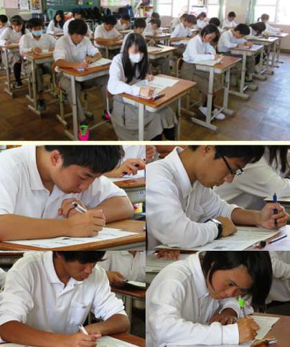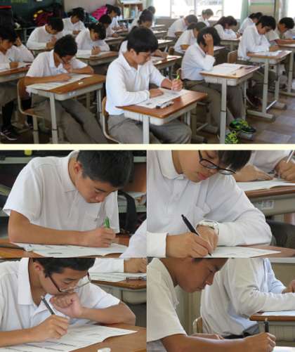 4限のテストは、全学年 社会です。写真は3年の様子です。