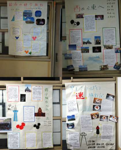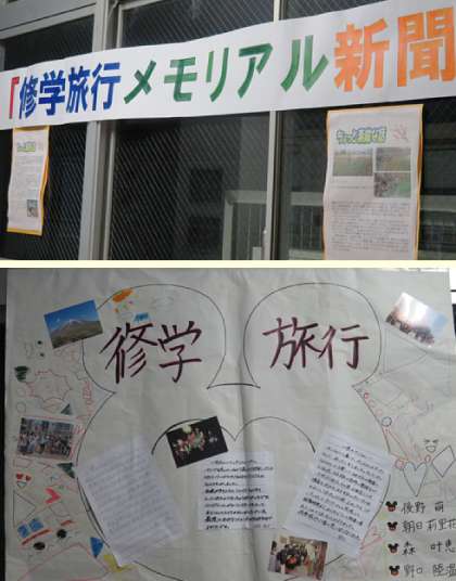 5月に関東方面にいった修学旅行について「 Show and Tell 」で発表した内容を新聞にしたものと富士山の美しさを表現したシールアートを展示しました。いかがだったでしょうか。