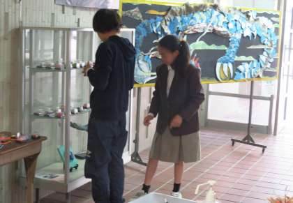2限の授業の様子です。学習発表会で展示していた作品の整理をしてくれていました。