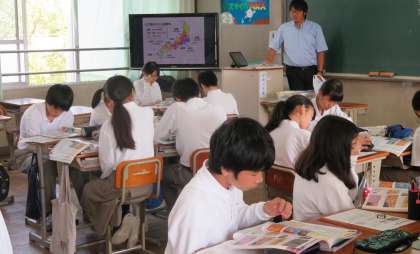 4限の授業の様子です。上から、2組 英語、3組 社会、4組 理科 です。