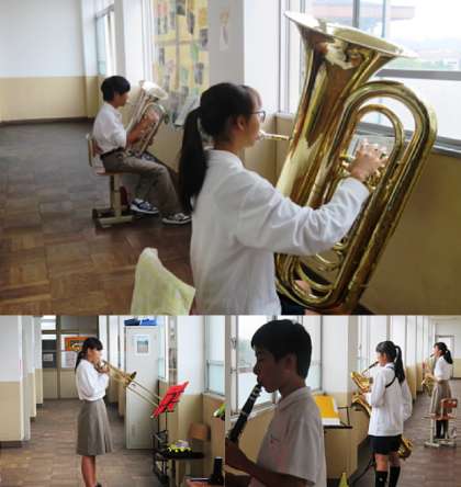 部活動の様子です。上から、バレーボール部、バスケットボール部、吹奏楽部 です。