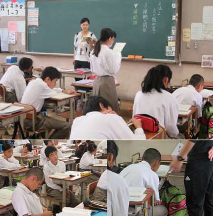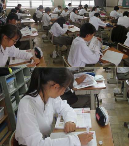 2限の授業の様子です。上から、2組 保健、3組 国語、4組 理科 です。