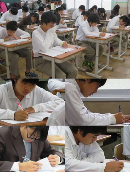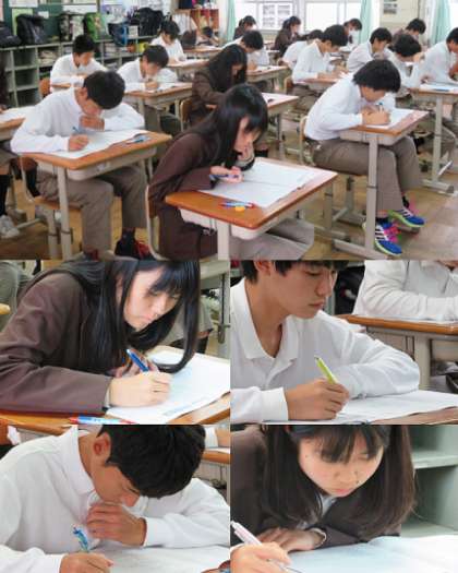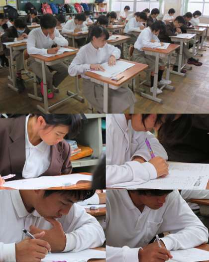 6限社会の3年生の様子です。明日は、残りの3教科(4限〜 数学、理科、英語)のテストが行われます。