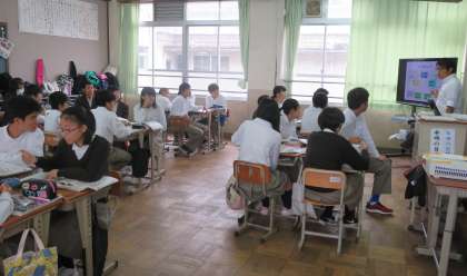 2限の授業の様子です。上から、2組 社会、3組 国語、4組 理科 です。