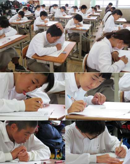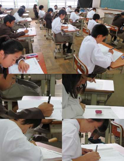 本日(10月16日)、全学年4限から数学、理科、英語の学習確認プログラムが6限まで実施されました。4限の数学のテストの様子です。