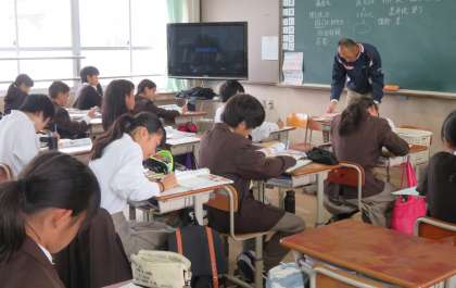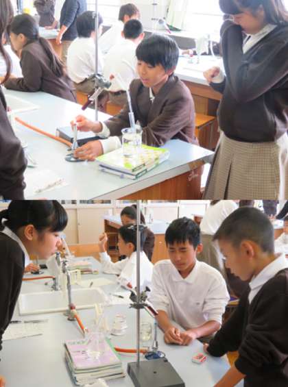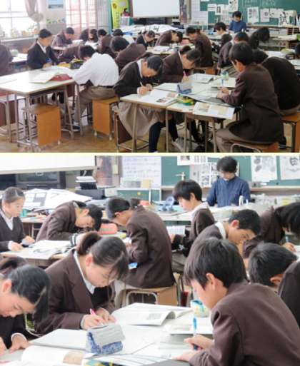 3限の授業の様子です。上から、2組 理科、3組 美術、4組 社会 です。