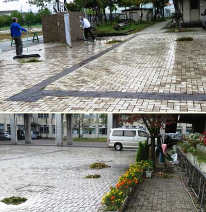 おはようございます。朝の様子です。昨日から今朝方にかけての暴雨の影響で、落ち葉が中庭一面に落ちていましたが、管理用務員さんを中心に掃き掃除をしていただきました。