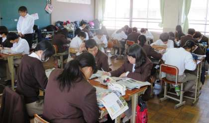 3限の授業の様子です。上から、2組 社会、3組 英語、4組 理科 です。