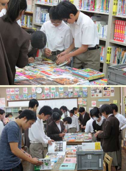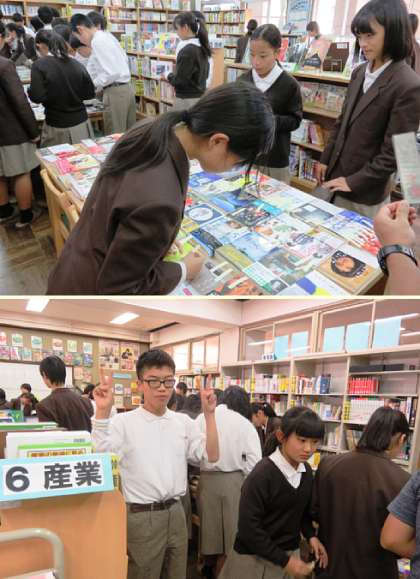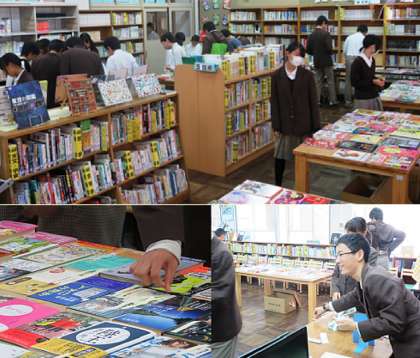 昼休みの様子です。たくさんの生徒が来室して、本を選んでいました。